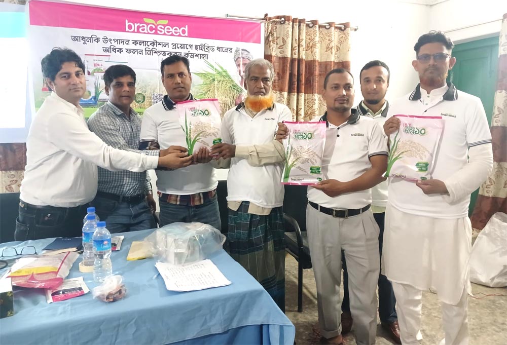কর্মশালার শেষে অংশগ্রহণকারী মডেল কৃষকদের মাঝে আমন মৌসুমে চাষের জন্য জনপ্রিয় ব্র্যাক হাইব্রিড-১০ ধান বীজ বিতরণ করা হয়।